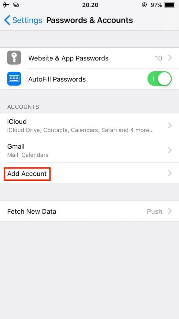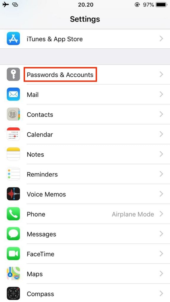 - Settings (Ayarlar) -> Passwords and Accounts (Şifreler ve Hesaplar) kısmına gidin.
