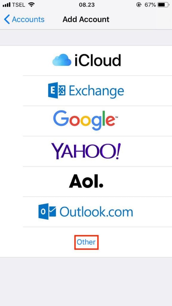 Bu aşamada size birkaç adet e-posta sağlayıcı seçeneği sunulacak. Özel bir e-posta adresi eklemek için Other (Diğer) seçeneğine tıklayın.